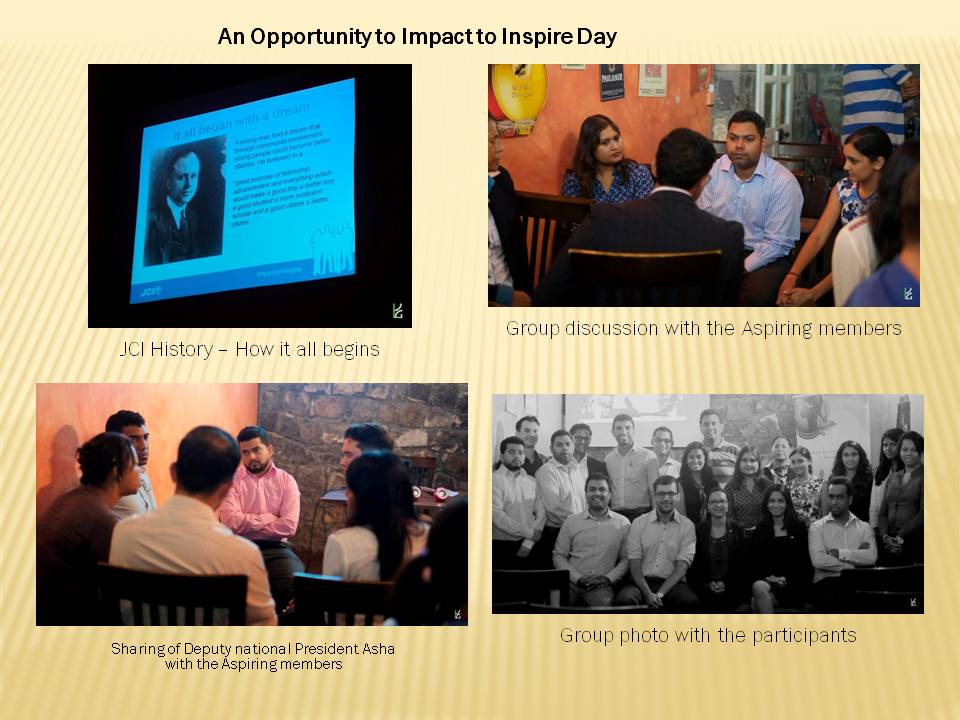 The Opportunity to Impact to Inspire session successfully achieved the objectives of providing the participants with an overview of what is JCI as well as what do we do at JCI City Plus as well as in the other local organisation. The more so that they had the opportunity to discuss with the 2016 JCI Mauritius National President Yudhish Rama as well as the 2016 JCI Mauritius Deputy National President Asha Auckloo together with the Local Board Members of JCI City Plus who were all present to respond to their queries.