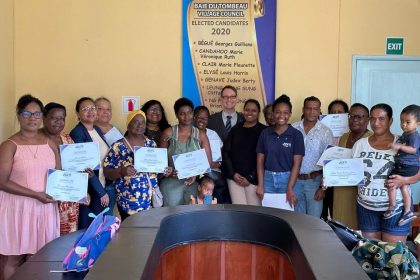 President Victor Omarson meets the accomplished ladies of Baie du Tombeau, celebrating their completion of a culinary course with certificates of participation. 🌐👩‍🍳